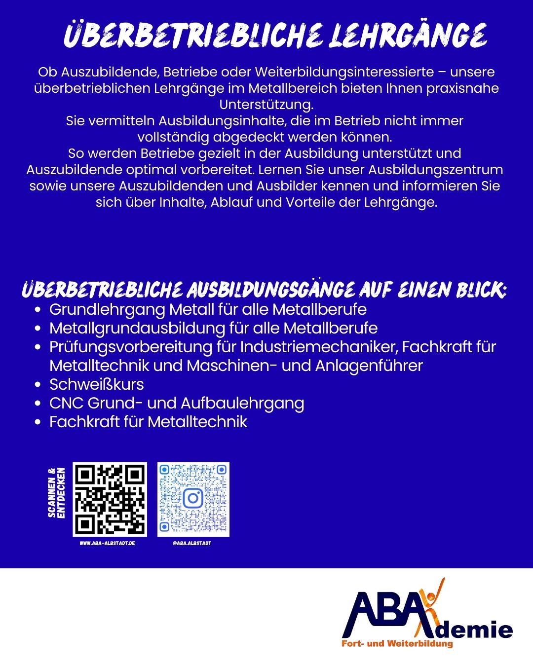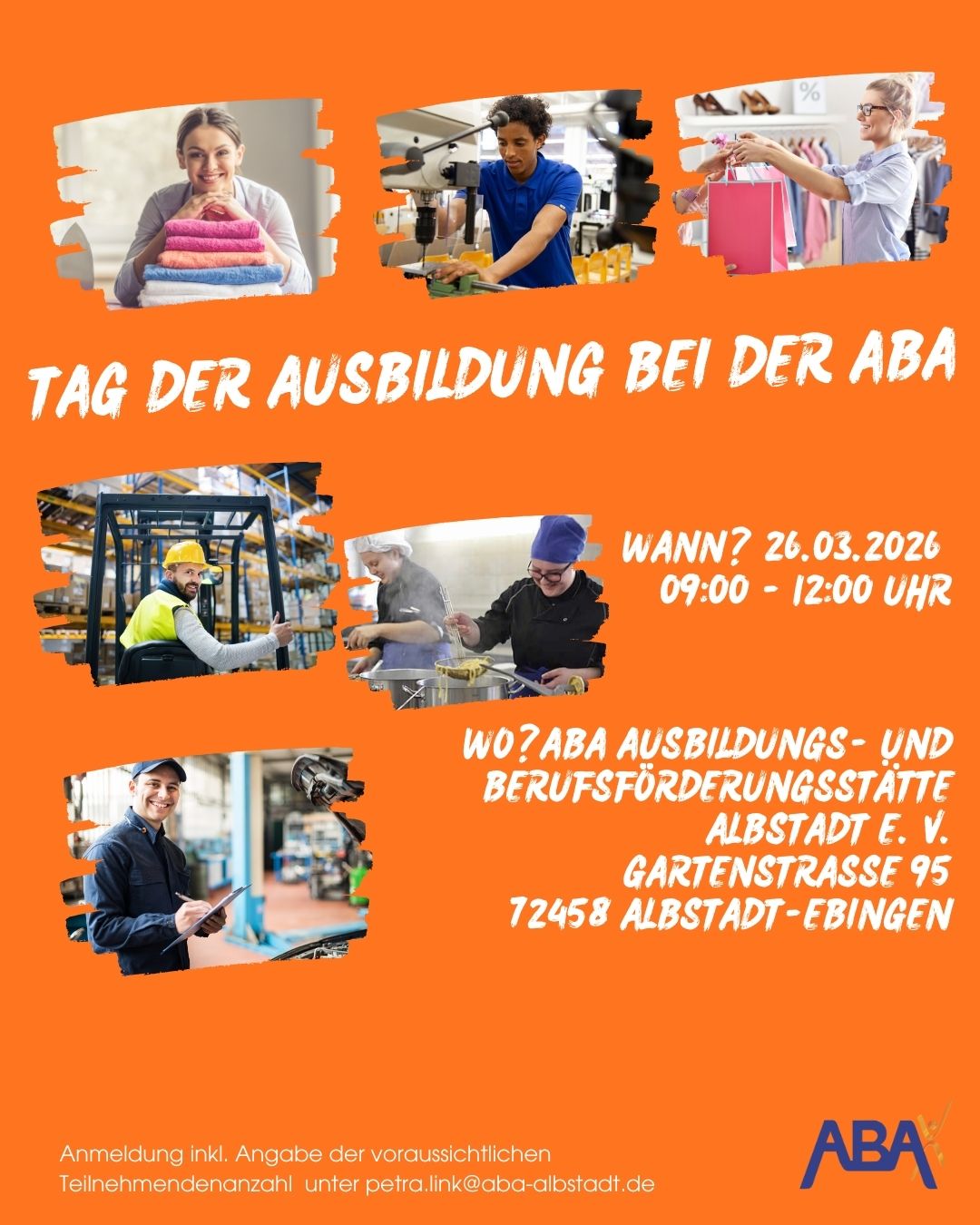 Wo? ABA Ausbildungs- und Berufsförderungsstätte Albstadt e. V., Gartenstraße 95, 72458 Albstadt