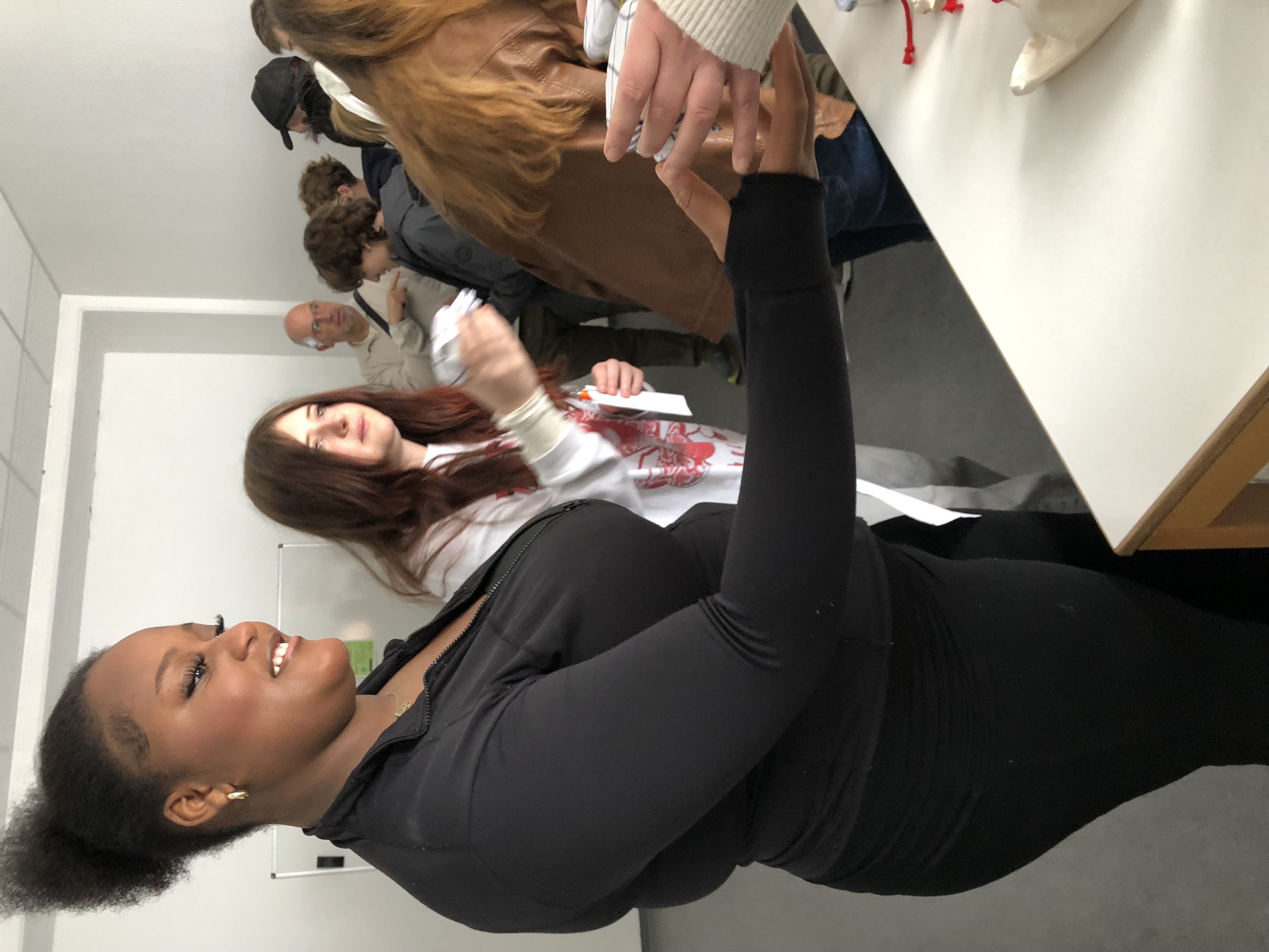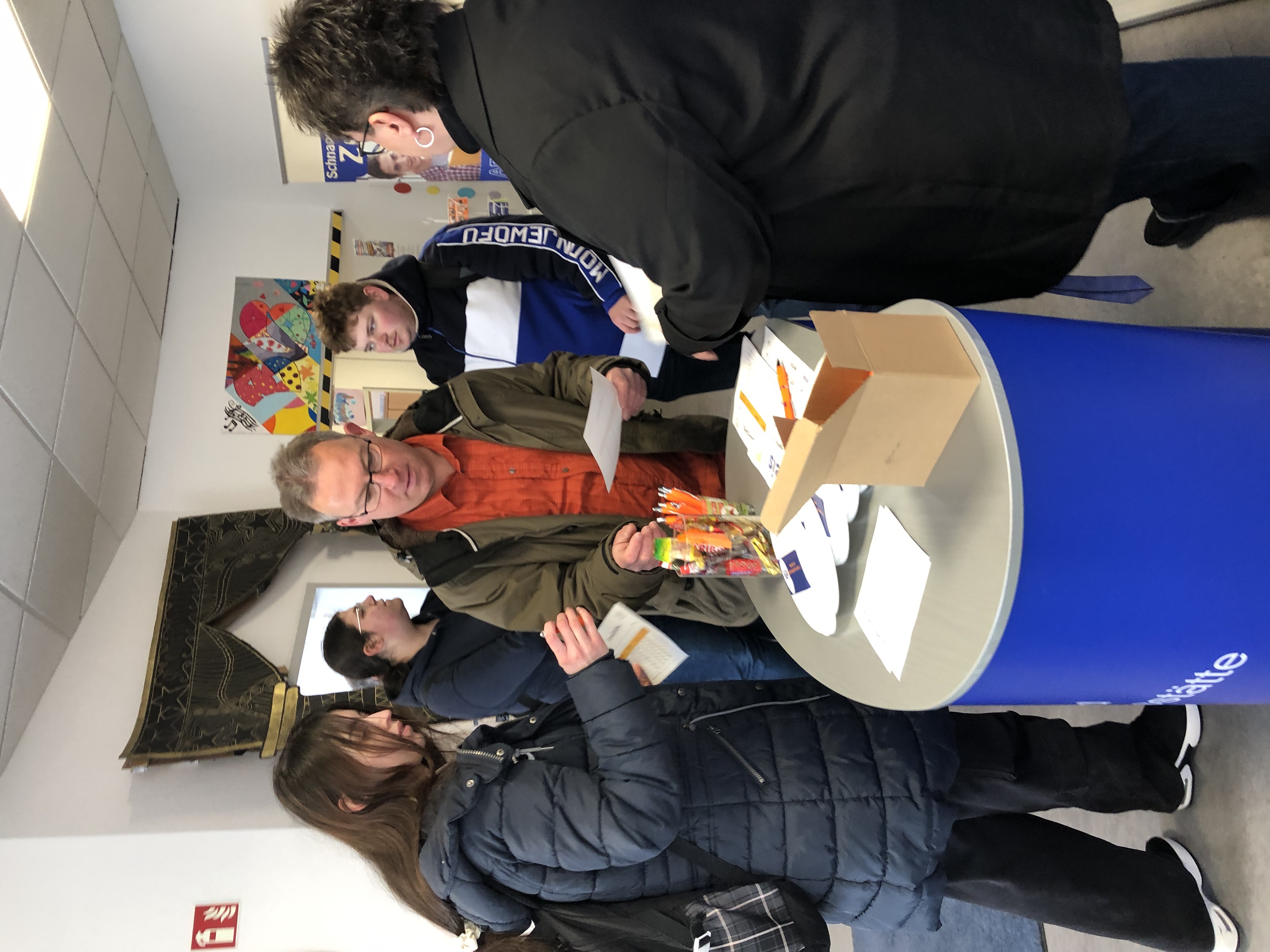 Im Raum mit der Aufschrift „Station 2 - Lager“ geben Yves Muschkat und Fabian Breter Einblicke in ihren Alltag zwischen Regalen und Paletten. Sie absolvieren ihre Ausbildung zu Fachlageristen bei Holzland Reichert und Toom. Beide wirken sicher in dem, was sie erzählen – doch der Weg dahin war nicht immer einfach. „Die Jugendlichen kommen zu uns mit körperlichen, kognitiven oder psychischen Beeinträchtigungen und benötigen eine besondere Form der Ausbildung“, erklärt Sabine Holstein, die Pädagogische Leitung der ABA. „Während der Ausbildung werden wir immer unterstützt“, erzählt Yves den Schülern. Gemeint ist nicht nur die fachliche Anleitung und der Förderunterricht. Sozialpädagoginnen und Psychologinnen begleiten die Auszubildenden durch den Alltag und helfen bei persönlichen wie beruflichen Herausforderungen. „Ich habe Angst vor Prüfungen“, sagt Yves offen vor den Schulklassen. „Aber wir werden immer von den Mitarbeitenden der ABA unterstützt.“ Solche Aussagen fallen an diesem Tag immer wieder – und zeigen, wie eng die Ausbildungsbegleitung ist.